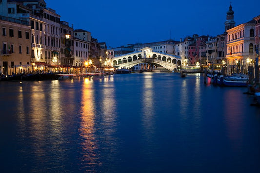 Italy-Venice Venices iconic Rialto Bridge at twilight Black Ornate Wood Framed Art Print with Double Matting by Eggers, Julie