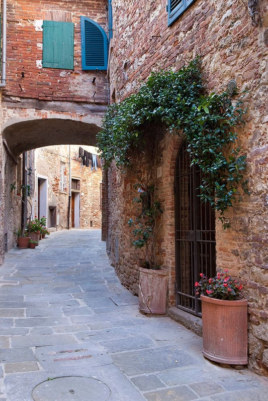 Italy-Tuscany-Pisa Vertical shot of a hallway in the streets of Pisa Black Ornate Wood Framed Art Print with Double Matting by Eggers, Julie