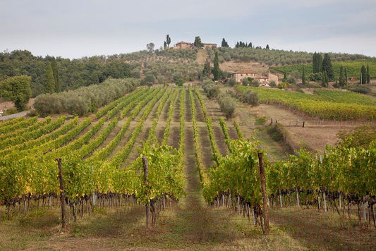 Italy-Tuscany Rows of grape vines in a vineyard in Tuscany Black Ornate Wood Framed Art Print with Double Matting by Eggers, Julie