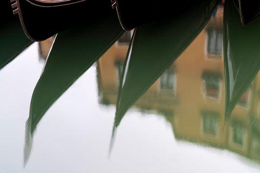 Europe-Italy-Venice-Reflections of gondolas in canal Black Ornate Wood Framed Art Print with Double Matting by Jaynes Gallery