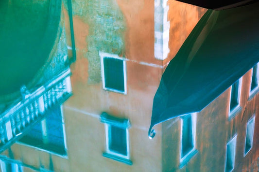 Europe-Italy-Venice-reflections of gondola and buildings in still canal Black Ornate Wood Framed Art Print with Double Matting by Jaynes Gallery