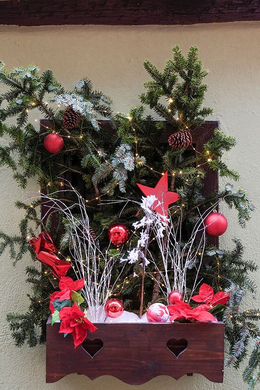 Riquewihr-France Village established 1400s in Alsace Region Window decorated Christmas ornaments Black Ornate Wood Framed Art Print with Double Matting by McRoberts, Julien