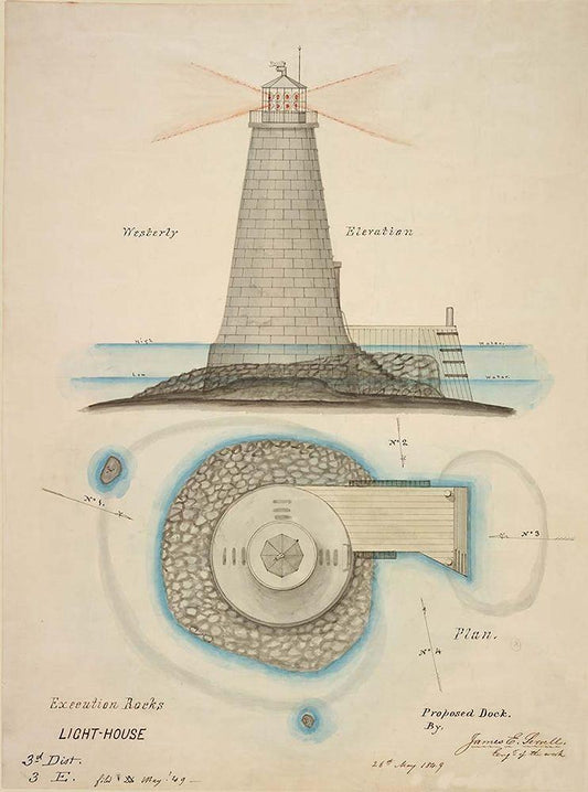 Rocks, NY Light House White Modern Wood Framed Art Print with Double Matting by Anonymous