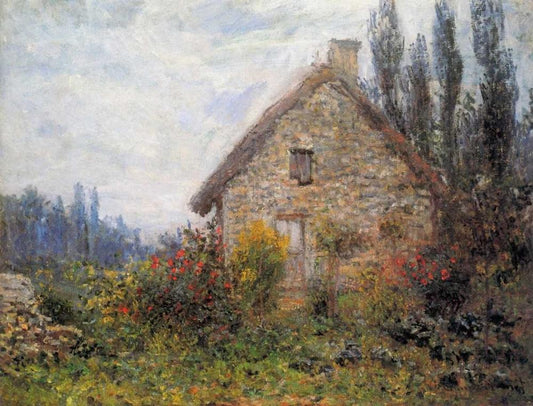 Cottage 1879 Black Ornate Wood Framed Art Print with Double Matting by Monet, Claude