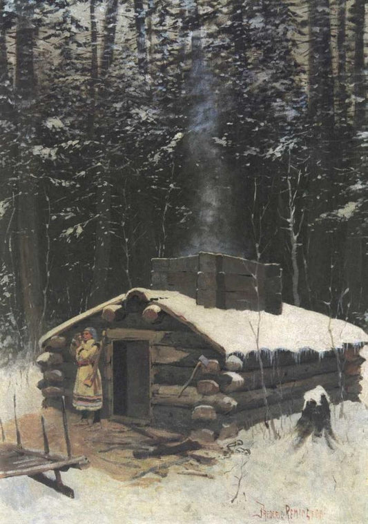 Antoines Cabin Black Ornate Wood Framed Art Print with Double Matting by Remington, Frederic