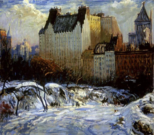 A View of the Plaza from Central Park Black Ornate Wood Framed Art Print with Double Matting by Goodwin, Arthur Clifton