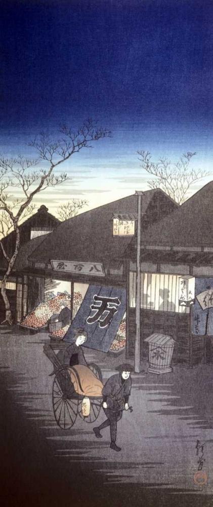 Japanese Print - Vegetable Shop Black Ornate Wood Framed Art Print with Double Matting by Chowka
