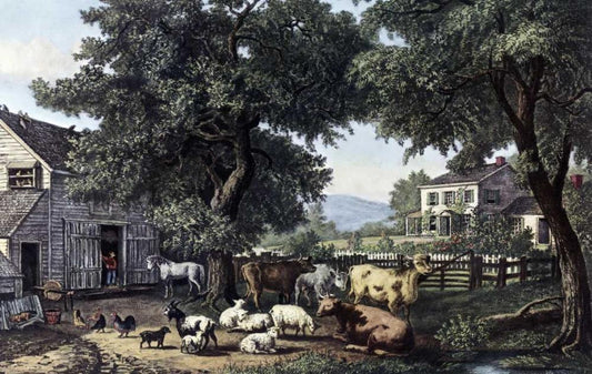 Old Homestead Black Ornate Wood Framed Art Print with Double Matting by Currier and Ives