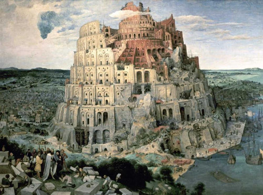 Tower of Babel Black Ornate Wood Framed Art Print with Double Matting by Bruegel, Pieter the Elder