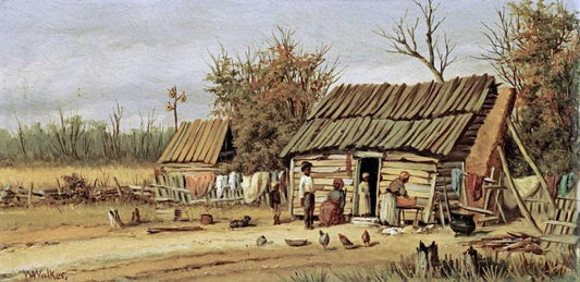 Cabin Scene Black Ornate Wood Framed Art Print with Double Matting by Walker, William Aiken