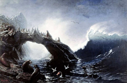 Farallon Island Black Ornate Wood Framed Art Print with Double Matting by Bierstadt, Albert