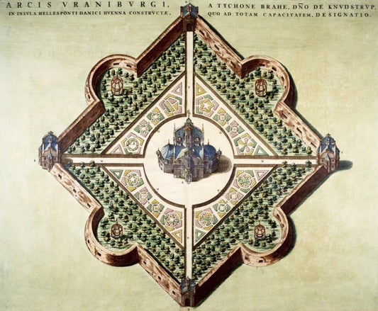 Arcis Uraniburgi Black Ornate Wood Framed Art Print with Double Matting by Blaeu, Joan