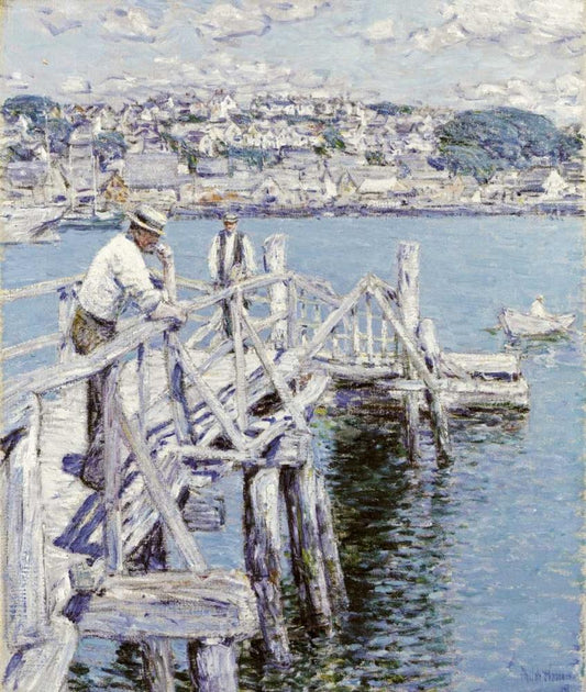 Dock Scene, Gloucester Black Ornate Wood Framed Art Print with Double Matting by Hassam, Childe