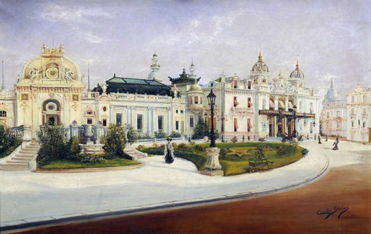 The Casino, Monte Carlo Black Ornate Wood Framed Art Print with Double Matting by Stevens, Charles