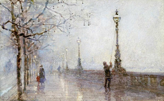 The Last Lamp, Thames Embankment Black Ornate Wood Framed Art Print with Double Matting by Bartom, Rose Maynard