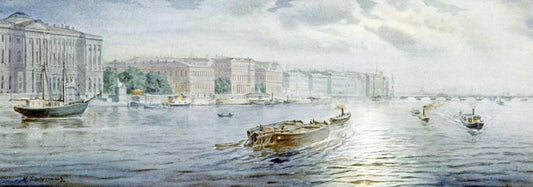 The Winter Palace From The River Neva, St. Petersburg Black Ornate Wood Framed Art Print with Double Matting by Balunin, Mikhail Abramovich
