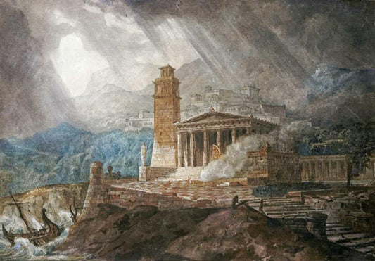 A Capriccio of a Roman Port During a Storm Black Ornate Wood Framed Art Print with Double Matting by Gandy, Joseph Michael