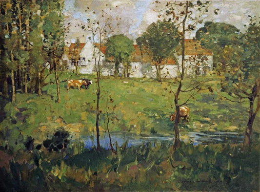 A Scottish Farm Black Ornate Wood Framed Art Print with Double Matting by Hamilton, James Whitelaw