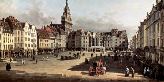 Dresden, the Old Market from Castle Street Black Ornate Wood Framed Art Print with Double Matting by Bellotto, Bernardo