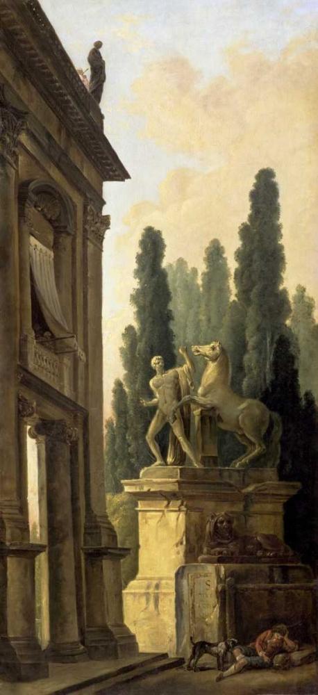 The Landscape with Obelisk Black Ornate Wood Framed Art Print with Double Matting by Robert, Hubert