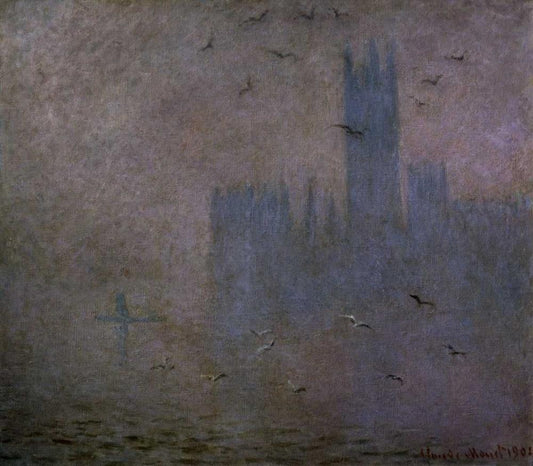 Houses of Parliament, Seagulls, 1904 Black Ornate Wood Framed Art Print with Double Matting by Monet, Claude