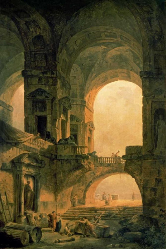 Vaulted Arches Ruin Black Ornate Wood Framed Art Print with Double Matting by Robert, Hubert