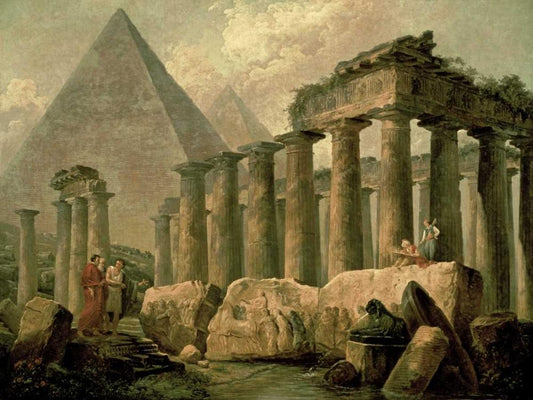 Ruins of a Doric Temple Black Ornate Wood Framed Art Print with Double Matting by Robert, Hubert