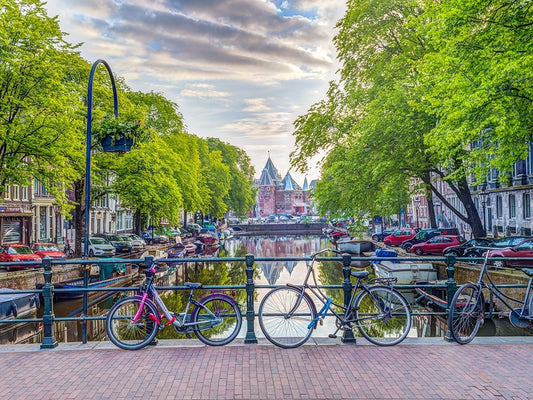 Bicycles parked along the canal, Amsterdam Black Ornate Wood Framed Art Print with Double Matting by Frank, Assaf