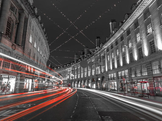 London city street with strip lights Black Ornate Wood Framed Art Print with Double Matting by Frank, Assaf