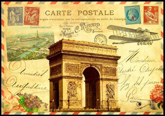 Vintage Paris Postcard Arc de Triomphe Black Ornate Wood Framed Art Print with Double Matting by De Lauzun, Marion