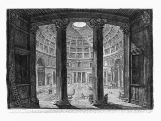 Veduta interna del Pantheon Black Ornate Wood Framed Art Print with Double Matting by Piranesi