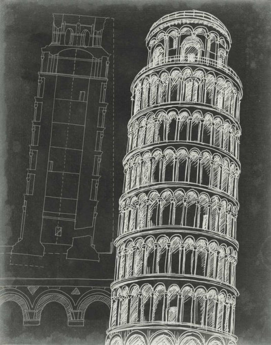 Architectural Schematic I Black Ornate Wood Framed Art Print with Double Matting by Harper, Ethan