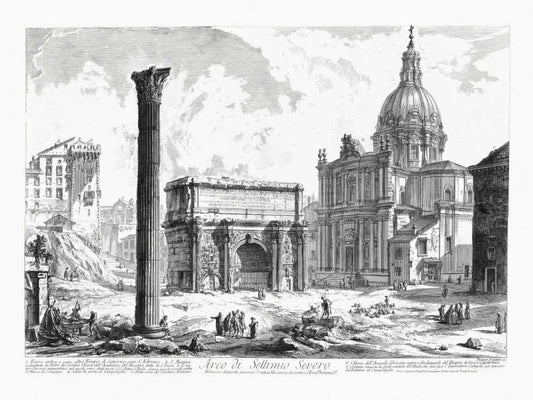 Arco de Settimo Severo Black Ornate Wood Framed Art Print with Double Matting by Piranesi