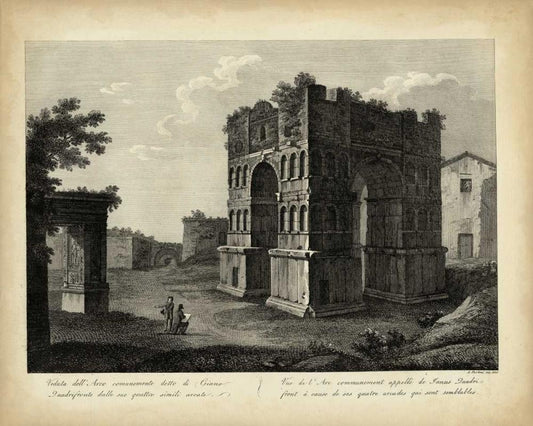 Arco di Giano Quadrifonte Black Ornate Wood Framed Art Print with Double Matting by Parboni, Pietro