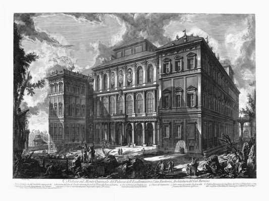Veduta sul Monte Quirinale Black Ornate Wood Framed Art Print with Double Matting by Piranesi