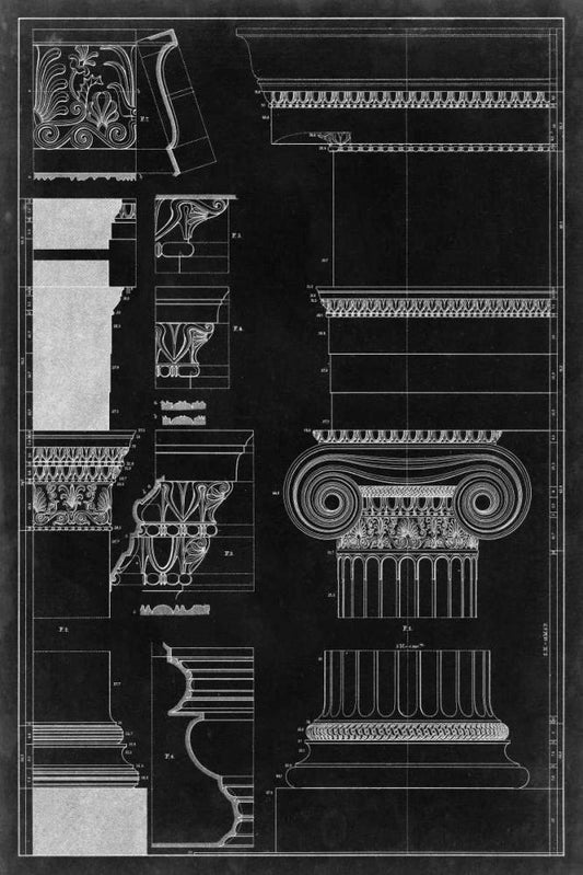 Palace Facade Blueprint I Black Ornate Wood Framed Art Print with Double Matting by Vision Studio