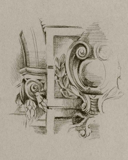Charcoal Architectural Study IV Black Ornate Wood Framed Art Print with Double Matting by Harper, Ethan