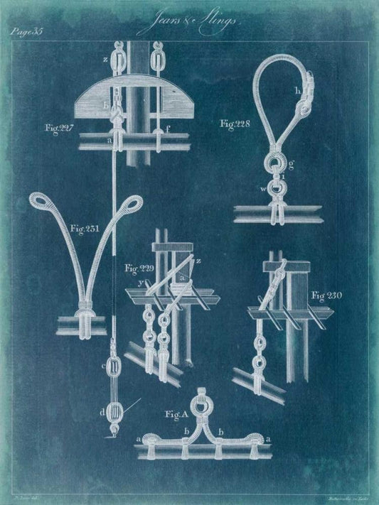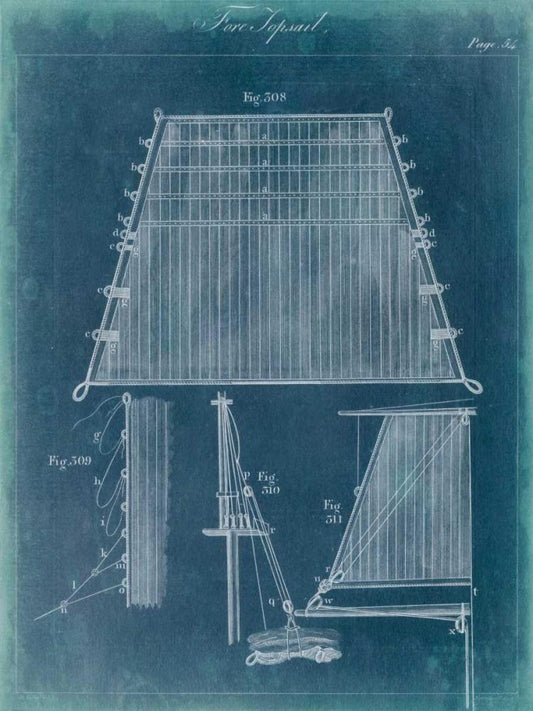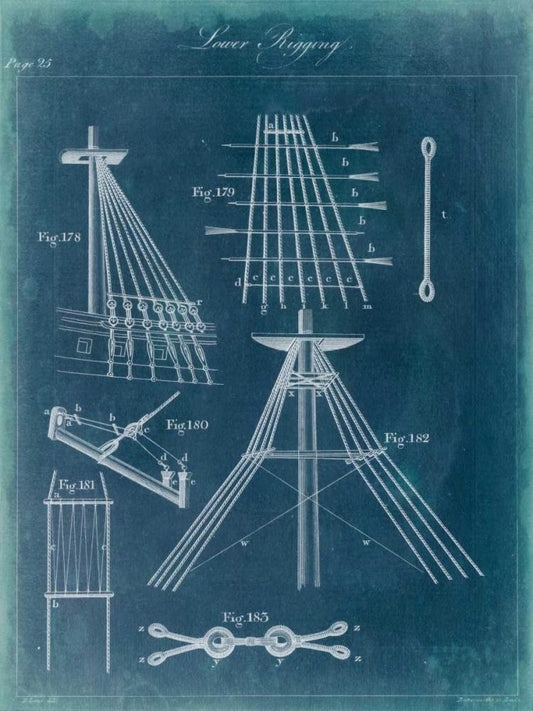 Nautical Detail Blueprint I Black Ornate Wood Framed Art Print with Double Matting by Vision Studio