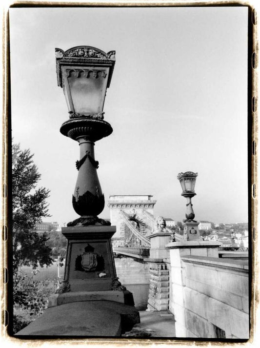 Chain Bridge over the Danube River Black Ornate Wood Framed Art Print with Double Matting by DeNardo, Laura