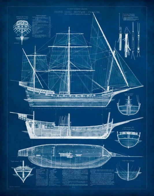 Antique Ship Blueprint IV Black Ornate Wood Framed Art Print with Double Matting by Vision Studio