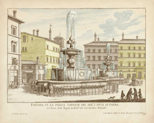 Fountains of Rome I Black Ornate Wood Framed Art Print with Double Matting by Vision Studio