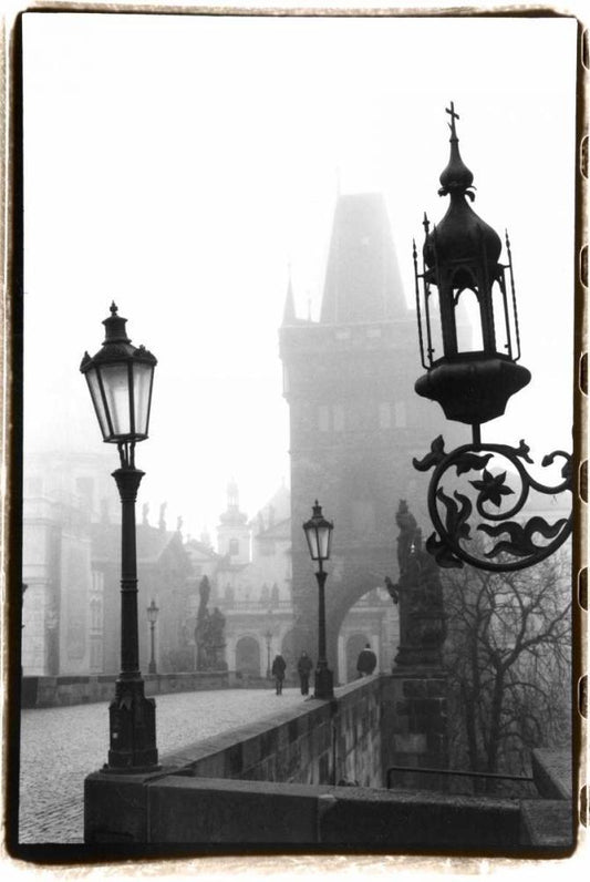 Charles Bridge in Morning Fog I Black Ornate Wood Framed Art Print with Double Matting by DeNardo, Laura