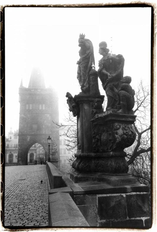 Charles Bridge in Morning Fog II Black Ornate Wood Framed Art Print with Double Matting by DeNardo, Laura