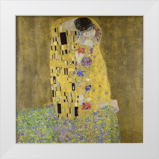 The Kiss White Modern Wood Framed Art Print by Klimt, Gustav