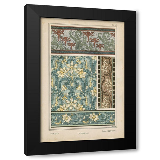 Nouveau Floral Design I Black Modern Wood Framed Art Print by Vision Studio