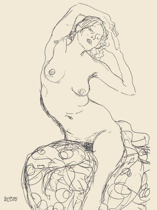 Seated Nude Woman White Modern Wood Framed Art Print with Double Matting by Klimt, Gustav