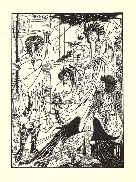 Morte DArthur 1893 - Devil as Women 1 Black Ornate Wood Framed Art Print with Double Matting by Beardsley, Aubrey