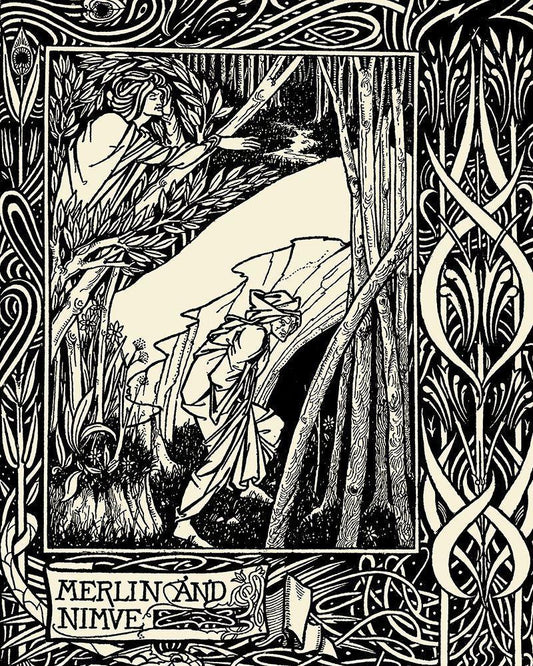 Morte DArthur 1893 - Merlin Taketh Black Ornate Wood Framed Art Print with Double Matting by Beardsley, Aubrey