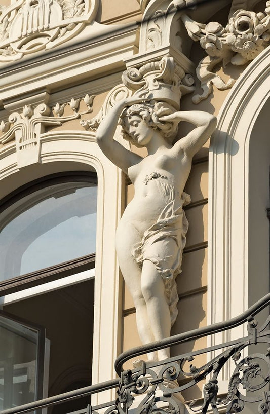 Art Nouveau building on Alberta Street in central Riga-Latvia Black Ornate Wood Framed Art Print with Double Matting by Su, Keren