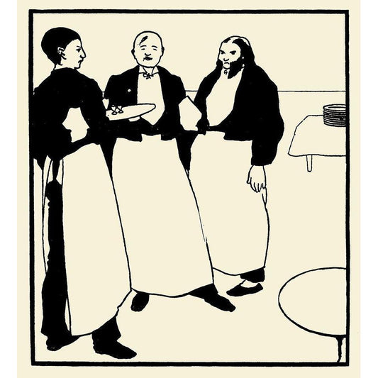 Yellow Book 1894 Vol.2 - Garcons de Cafe Black Modern Wood Framed Art Print with Double Matting by Beardsley, Aubrey